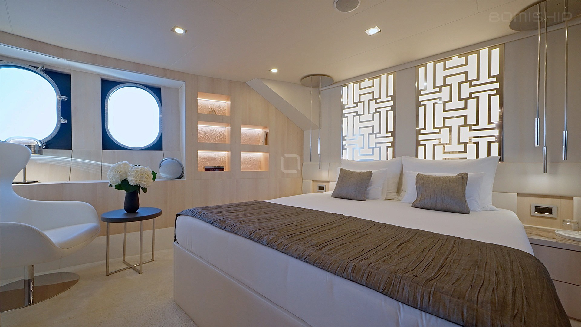 Her ample common spaces are ideal for great times together as well as wonderful moments in privacy. Relaxation seekers will appreciate the many areas to soak up the sun, from the expansive sundeck with sun loungers to the fly-deck Jacuzzi, where bubbly sunsets pair perfectly with a glass of champagne. Adventures are always an option, with a wide range of water toys available, including jet skis, water skis, sea bobs, stand-up paddleboards (SUPs), a water slide, and more. Those who favor solid ground will love the e-bikes that make it easy to explore islands and shores on a whim.