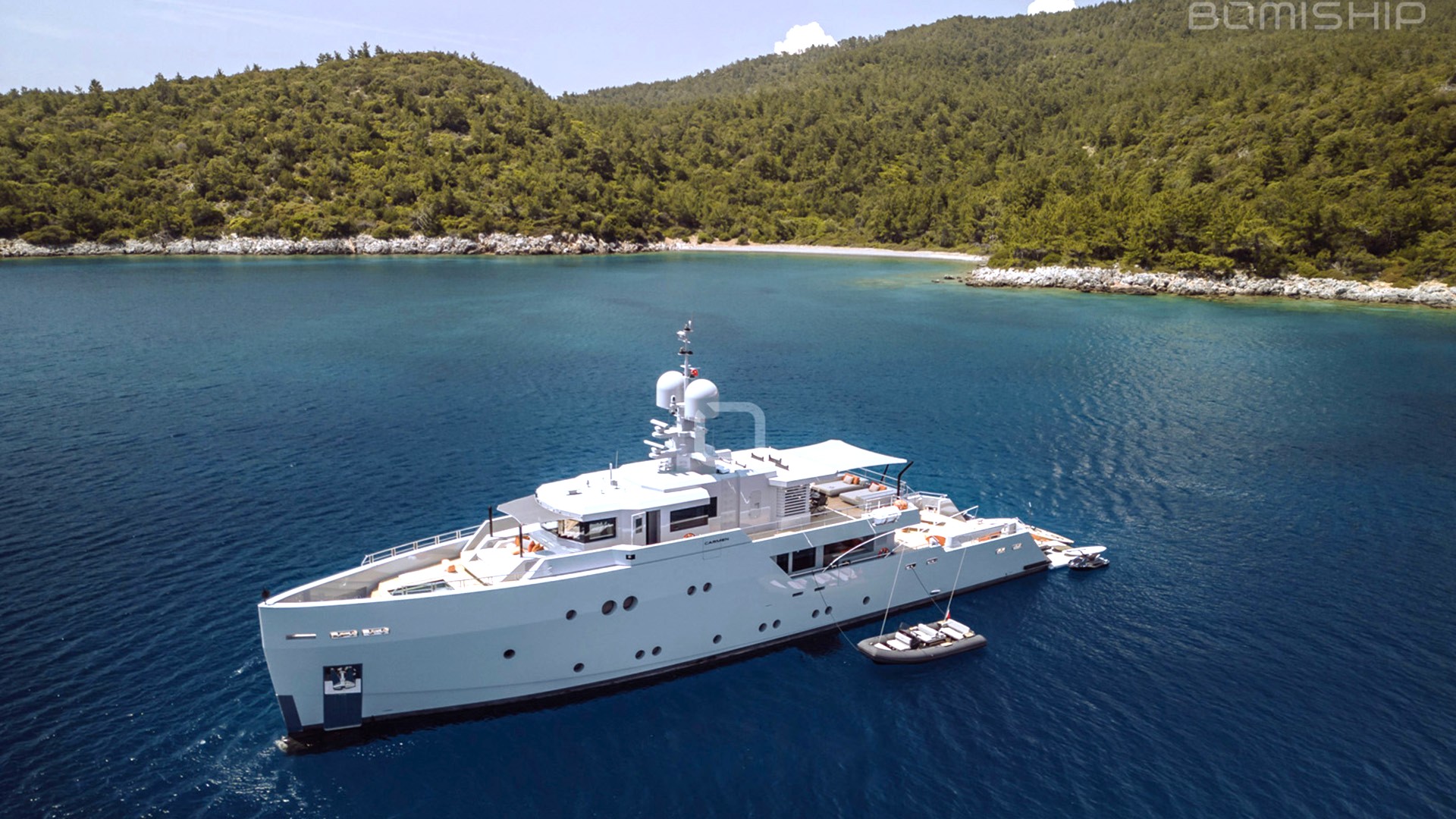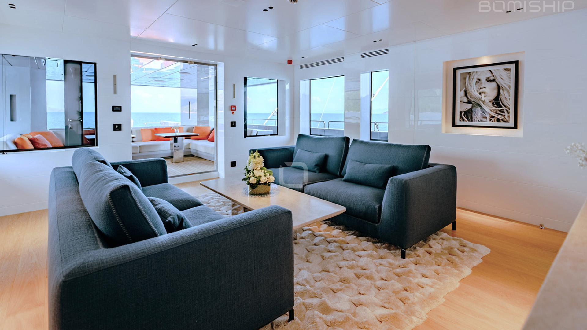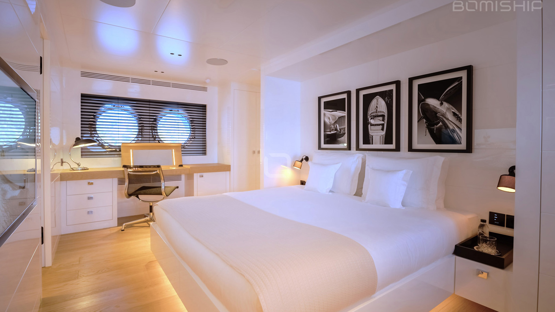 Launched with a bold explorer-style silhouette and conceived for high-energy charter experiences, Carmen is more than just a yacht; she’s a playground of action, elegance, and expansive freedom on the sea. With her strong lines, angular exterior, and beach house-inspired interior, Carmen masterfully bridges the worlds of luxurious leisure and adventure-driven living. Designed to accommodate up to ten guests, Carmen offers five spacious cabins, tailored for a variety of charter groups, including families, couples, and friends seeking shared thrills. The standout feature is the full-beam Master Suite, located on the main deck, complete with a king-size bed, bespoke designer touches, and an ensuite bathroom boasting twin sinks and a rain shower. The lower deck features two double and two twin cabins, all en-suite, ensuring equal comfort across the board. Life onboard Carmen is centered around vibrant social zones and laid-back luxury. The sky lounge serves as the heart of entertainment with a dining table for ten, an American-style bar, a built-in grill, and oversized sun pads. From alfresco dinners on the shaded aft deck to intimate meals in the main salon, every setting has been created with flexibility and enjoyment in mind. A premium wine cellar, walk-in fridges, and high-end appliances ensure top-tier dining experiences. At the same time, custom Bromic outdoor heaters allow guests to enjoy the open decks in complete comfort, regardless of the weather. Adventure pulses through every inch of Carmen’s outdoor space. The expansive aft deck opens into a dynamic beach club perfect for sunbathing, socializing, or setting off on a day of watersports. With a transformer platform built into the stern, boarding tenders, diving into the sea, or launching a jet ski is effortlessly elegant. At the bow, the hidden pool/jacuzzi, clad in Bisazza tiles, offers both functionality and minimalist design easily concealed under a teak deck when not in use, thereby expanding the outdoor lounging space. Dining, exploration, and relaxation blend seamlessly with service delivered by a seasoned and energetic seven-person crew. Each member brings expertise and dedication to ensure your days at sea are filled with unforgettable moments, whether it’s a sunrise yoga session, a day packed with toys and tenders, or a candlelit dinner under the stars. Carmen sets a new standard for boutique adventure on the water. She’s not just a yacht, she’s a call to action, a retreat, and a luxurious experience that invites you to dive in, lean back, and let the sea set your rhythm.