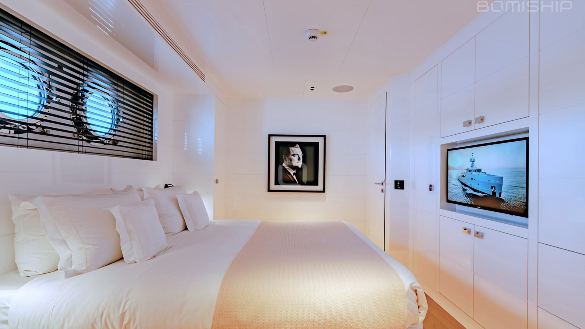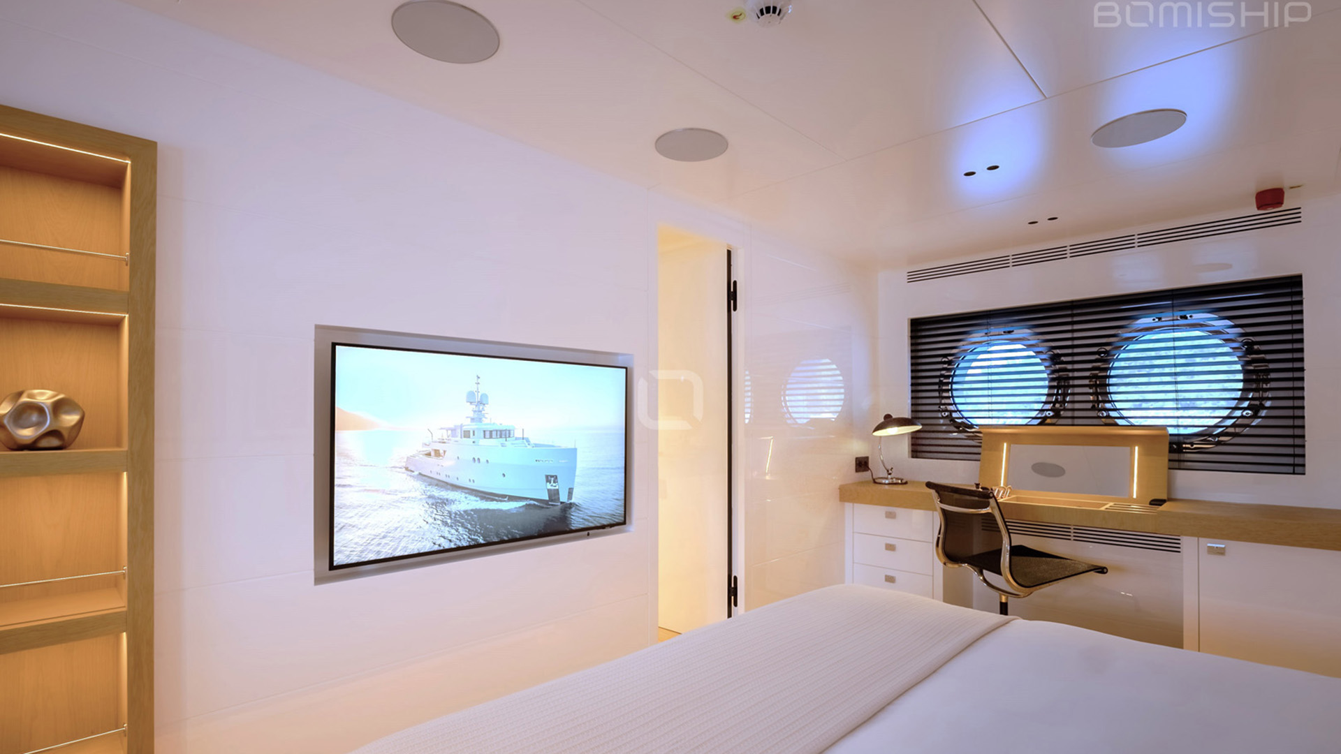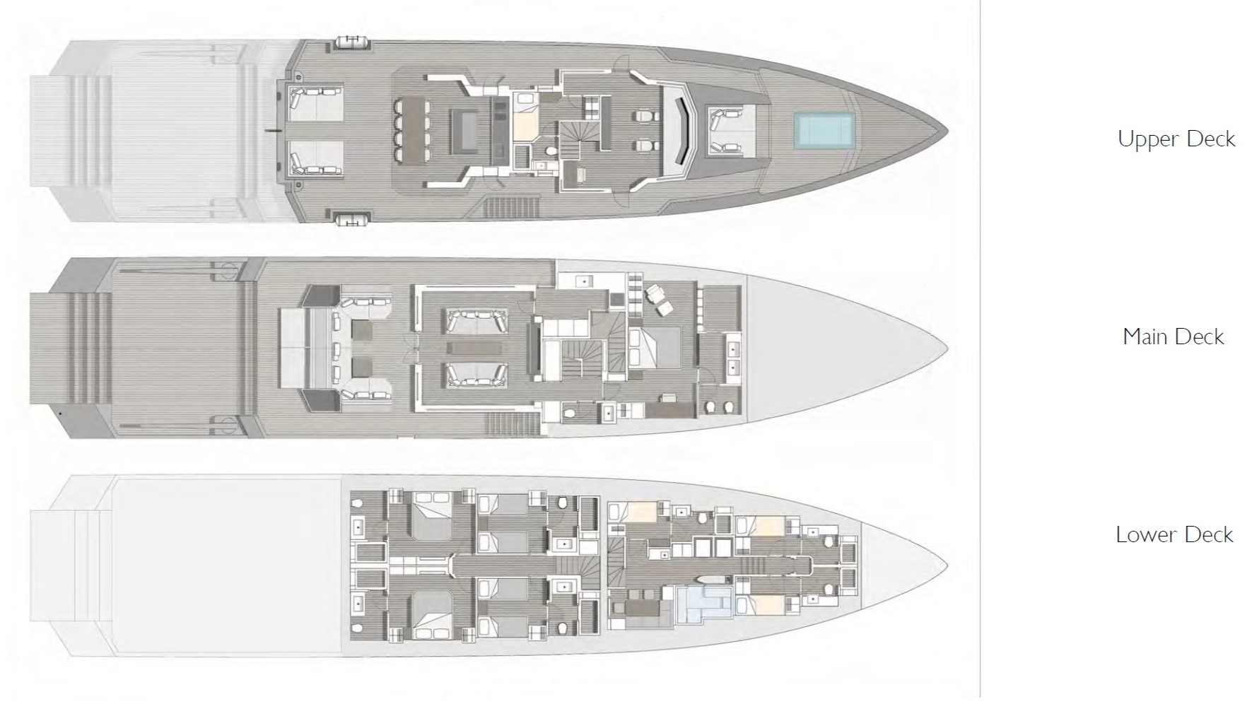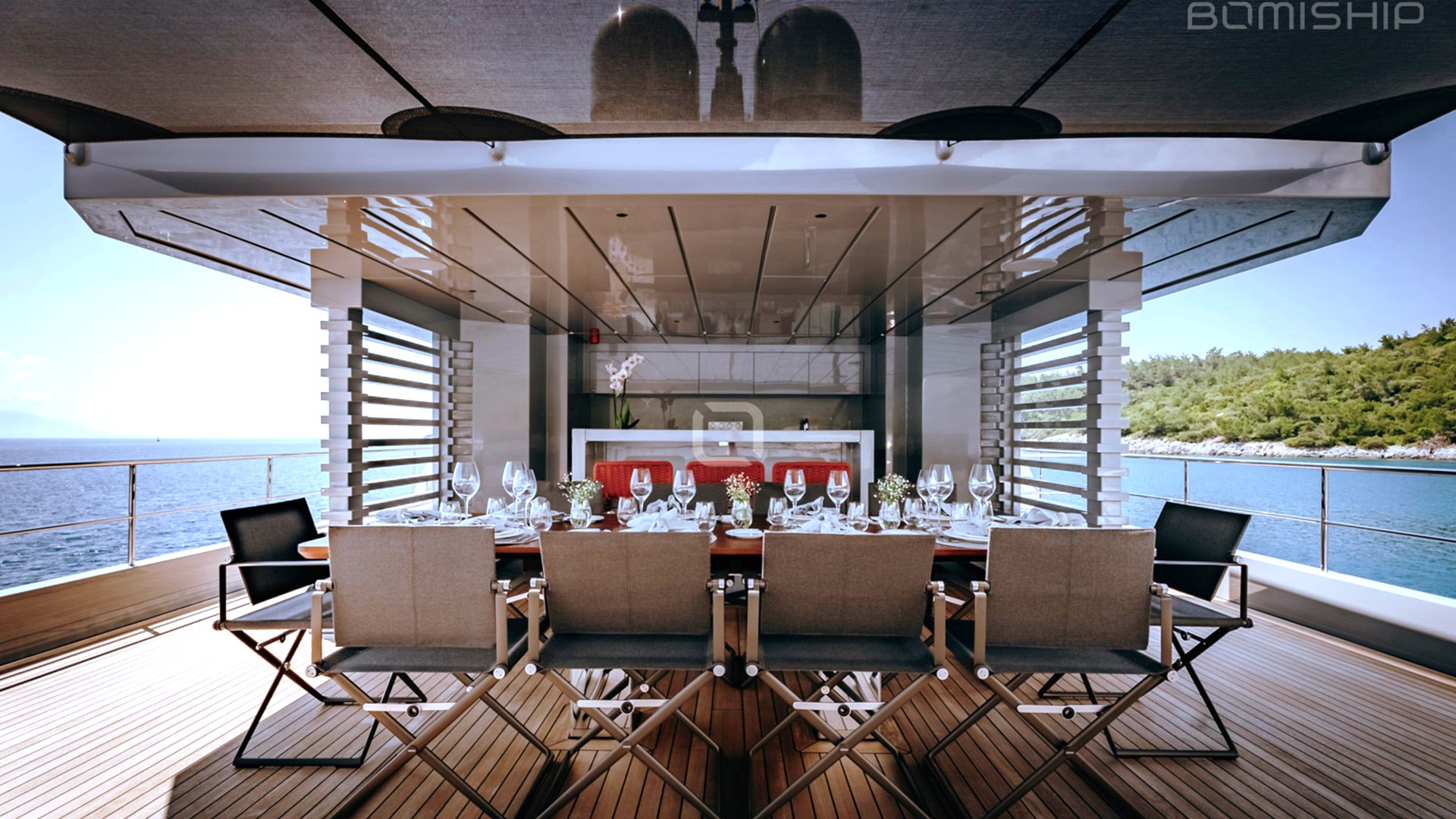 Launched with a bold explorer-style silhouette and conceived for high-energy charter experiences, Carmen is more than just a yacht; she’s a playground of action, elegance, and expansive freedom on the sea. With her strong lines, angular exterior, and beach house-inspired interior, Carmen masterfully bridges the worlds of luxurious leisure and adventure-driven living. Designed to accommodate up to ten guests, Carmen offers five spacious cabins, tailored for a variety of charter groups, including families, couples, and friends seeking shared thrills. The standout feature is the full-beam Master Suite, located on the main deck, complete with a king-size bed, bespoke designer touches, and an ensuite bathroom boasting twin sinks and a rain shower. The lower deck features two double and two twin cabins, all en-suite, ensuring equal comfort across the board. Life onboard Carmen is centered around vibrant social zones and laid-back luxury. The sky lounge serves as the heart of entertainment with a dining table for ten, an American-style bar, a built-in grill, and oversized sun pads. From alfresco dinners on the shaded aft deck to intimate meals in the main salon, every setting has been created with flexibility and enjoyment in mind. A premium wine cellar, walk-in fridges, and high-end appliances ensure top-tier dining experiences. At the same time, custom Bromic outdoor heaters allow guests to enjoy the open decks in complete comfort, regardless of the weather. Adventure pulses through every inch of Carmen’s outdoor space. The expansive aft deck opens into a dynamic beach club perfect for sunbathing, socializing, or setting off on a day of watersports. With a transformer platform built into the stern, boarding tenders, diving into the sea, or launching a jet ski is effortlessly elegant. At the bow, the hidden pool/jacuzzi, clad in Bisazza tiles, offers both functionality and minimalist design easily concealed under a teak deck when not in use, thereby expanding the outdoor lounging space. Dining, exploration, and relaxation blend seamlessly with service delivered by a seasoned and energetic seven-person crew. Each member brings expertise and dedication to ensure your days at sea are filled with unforgettable moments, whether it’s a sunrise yoga session, a day packed with toys and tenders, or a candlelit dinner under the stars. Carmen sets a new standard for boutique adventure on the water. She’s not just a yacht, she’s a call to action, a retreat, and a luxurious experience that invites you to dive in, lean back, and let the sea set your rhythm.