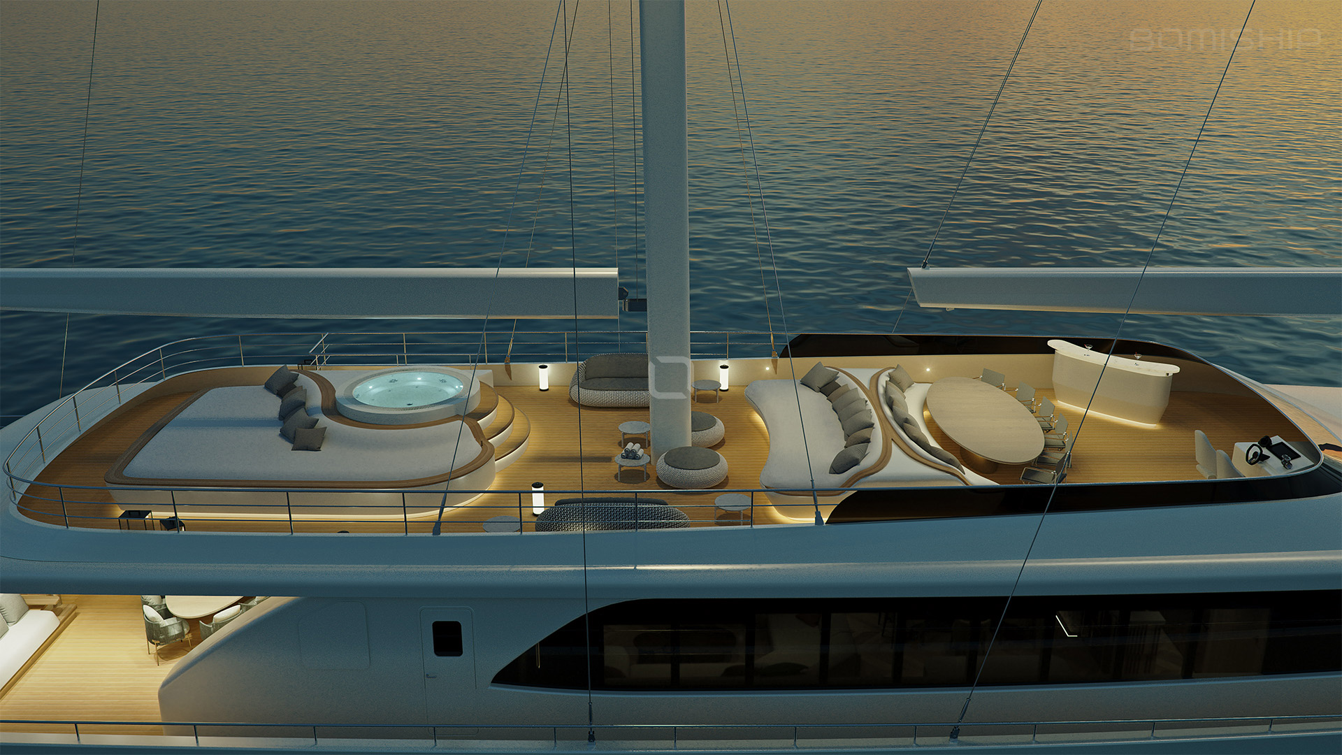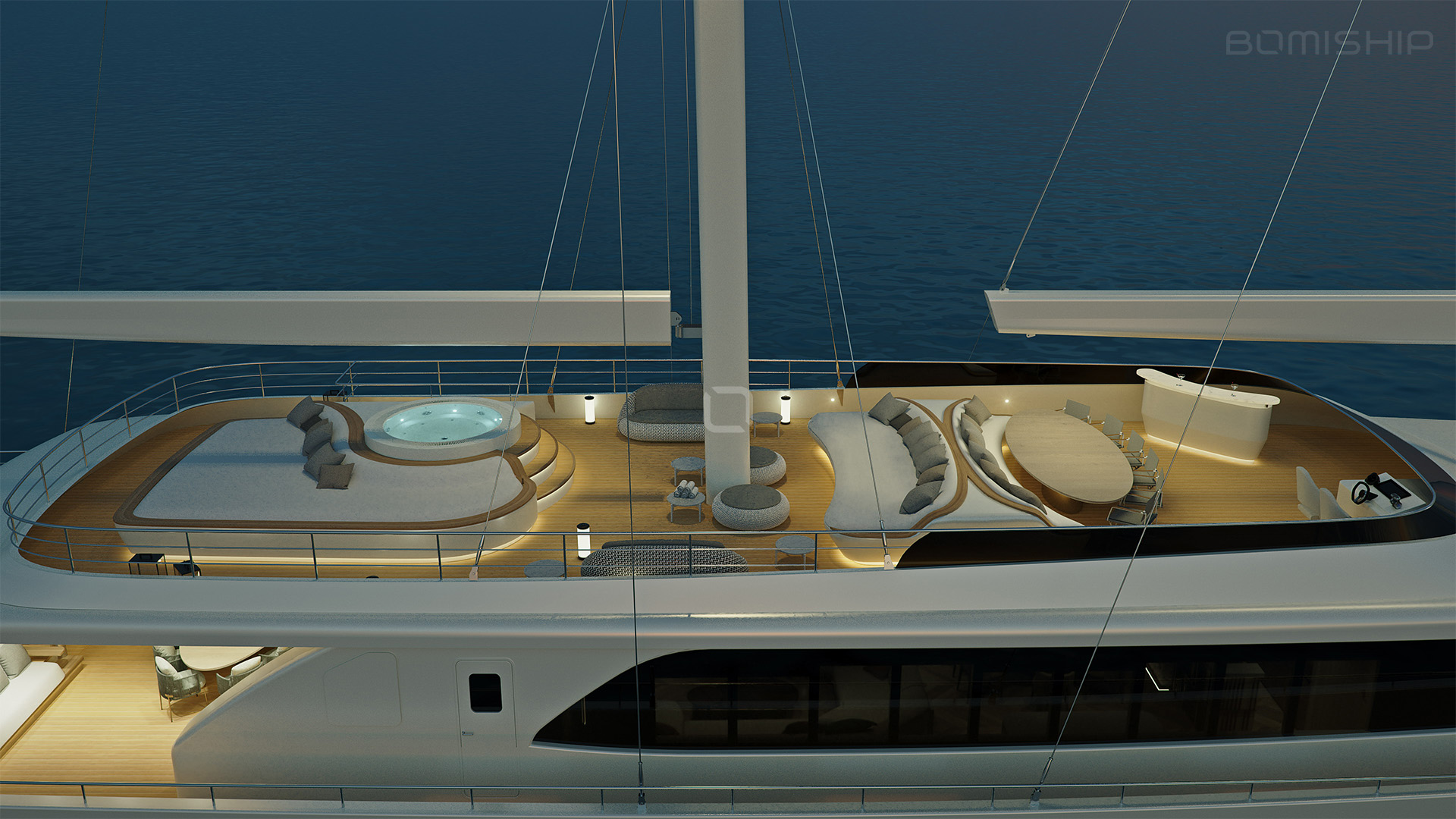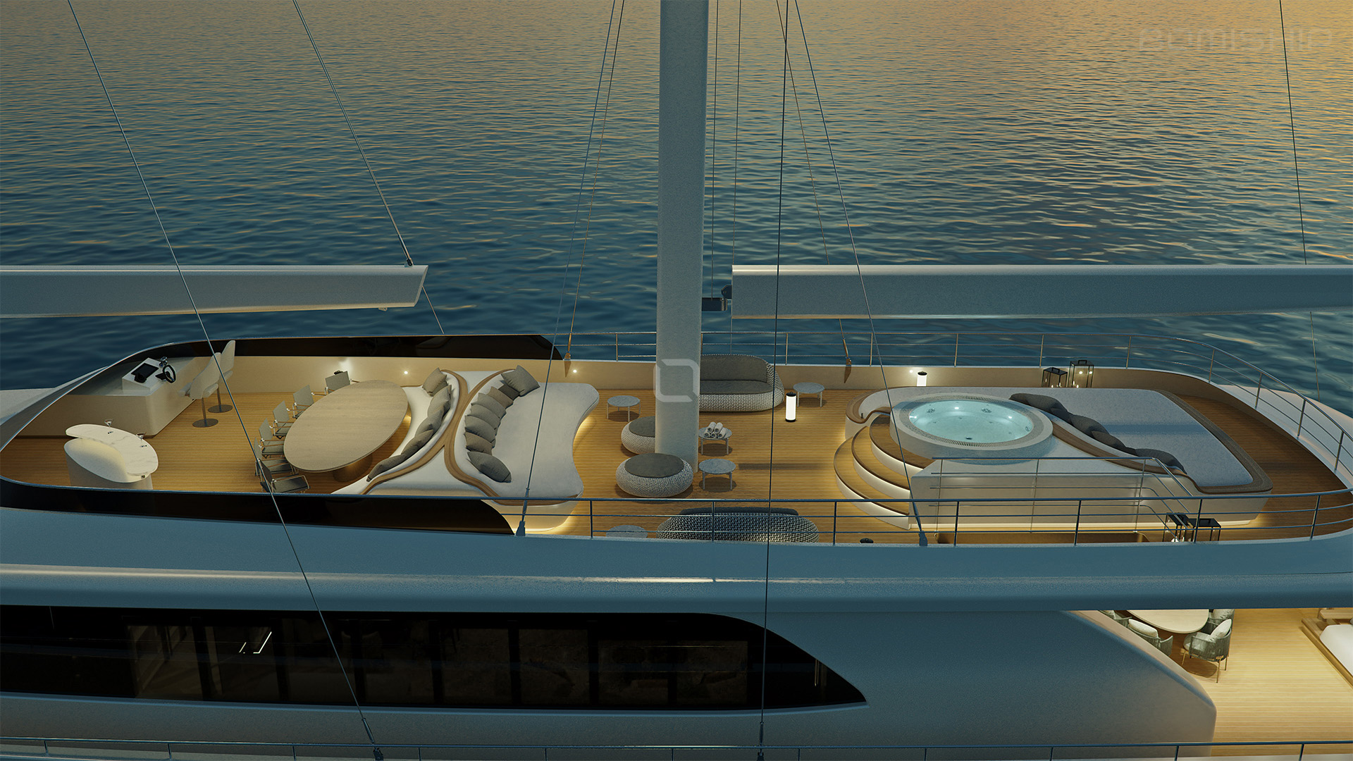 The sundeck is a social hub, featuring a jacuzzi for six, sun lounges, a fully stocked bar, and a BBQ area, ideal for al fresco dining with panoramic views. After sunset, guests can enjoy an open-air cinema under the stars or exclusive themed nights crafted by the crew, from Mediterranean tasting menus to live music evenings, creating unforgettable onboard memories.