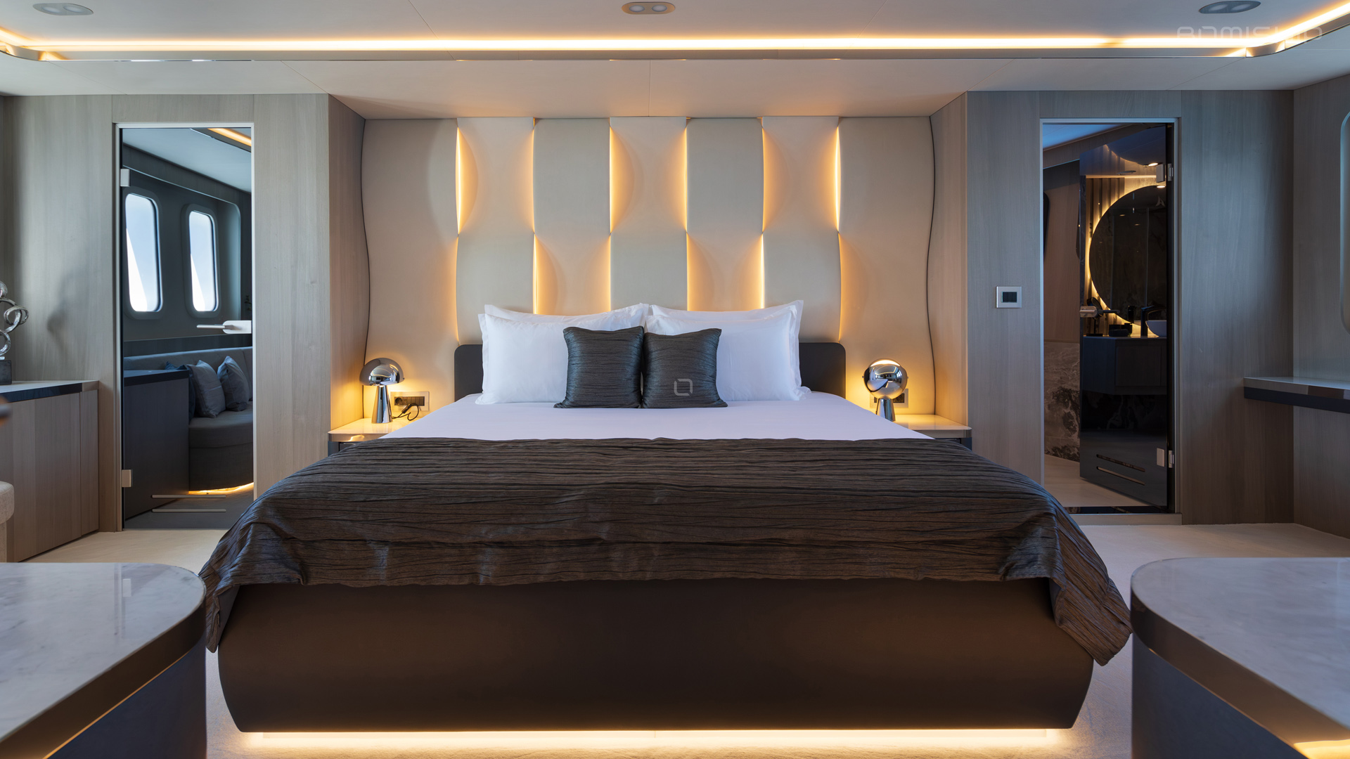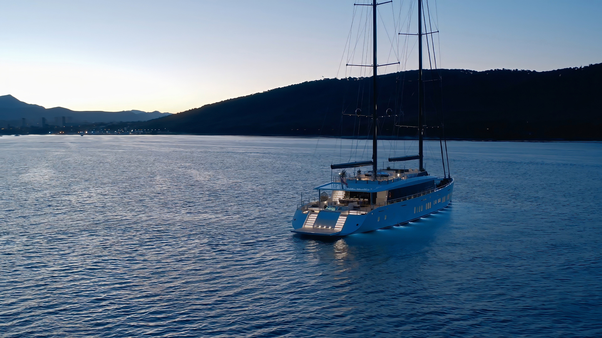 We are pleased to present the brand new 45.50-meter custom superyacht ADRI built for today's discerning sea voyagers. With its beam and two imposing masts, she stands out with her graceful appearance and sophisticated lines. At her beam, of 10 meters she is wider than other yachts in her category, which ensures superior comfort. Coupled with an interior that features oak furniture, light marble, a neutral color palette, and very large windows in the saloon, she oozes an impression of infinite space.