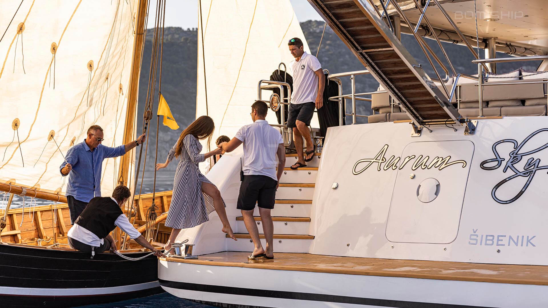 Launched in May 2020, twith extensive refit in 2025 this luxury crewed motor sailer is available for charter along the stunning Adriatic coast through BomiShip, an appointed central agency. Aurum Sky is by all means, a unique yacht on the charter market. At 43.5 meters, she offers expansive space in all areas. She accommodates up to 12 guests in 6 double en suite cabins. The cabins range between 20 m2 and 25 m2, and two can be converted to twin cabins. Equipped with a Smart TV/DVD, fridge, safe, Intercom, WiFi stralink 5G, and with room service an option, the cabins allow for an entirely private and personalized guest experience.