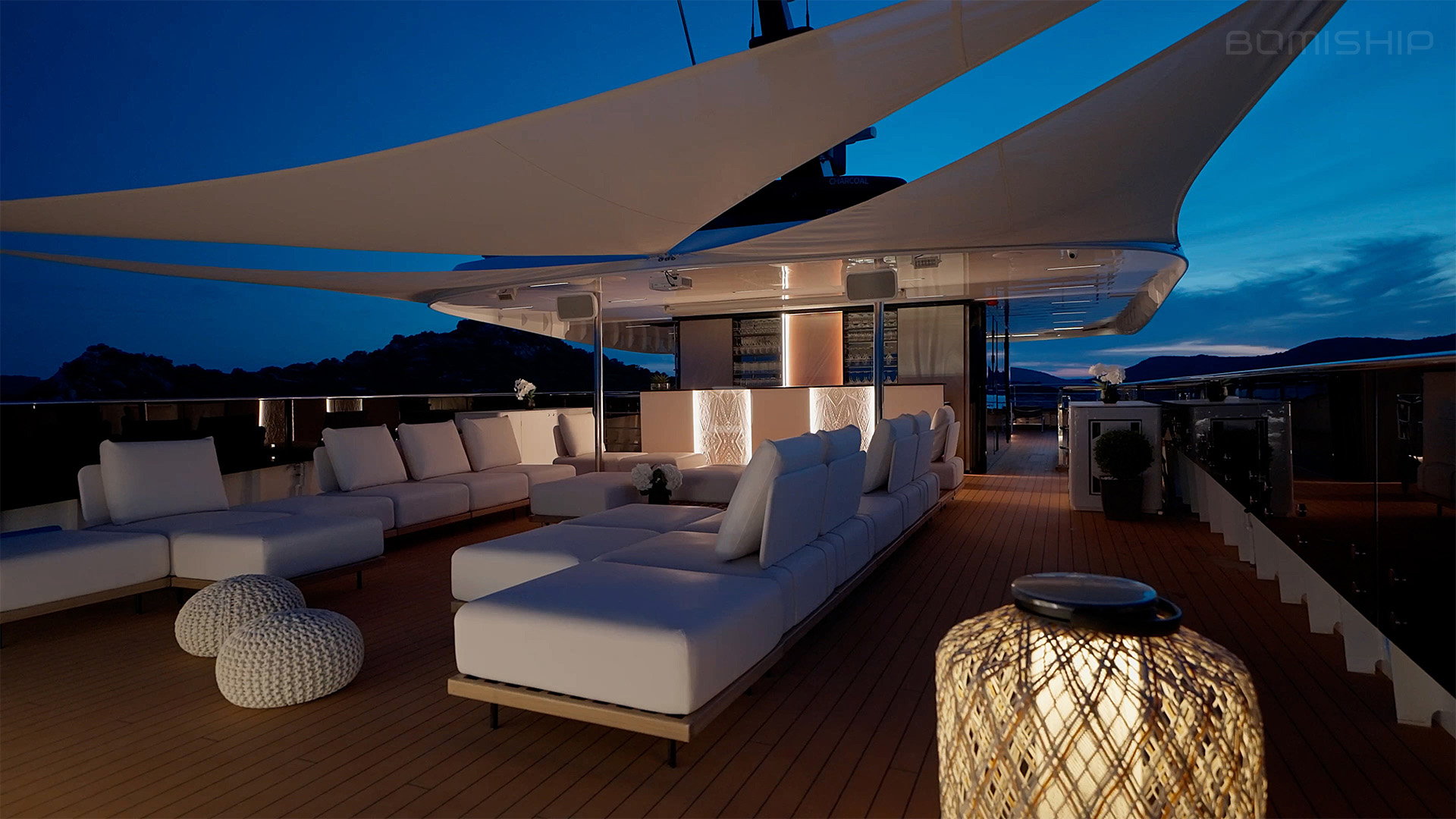 - Sundeck area; large lounge area, wet bar, sun pads, jacuzzi